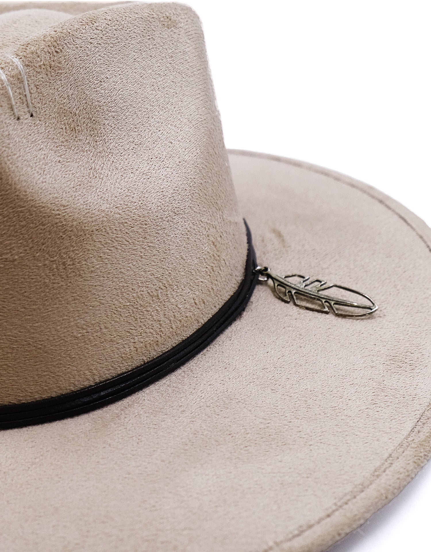 Sombrero indiana de gamuza. Diseño clásico, atemporal y personalizable. Tono cálido y acogedor para looks casuales o formales.