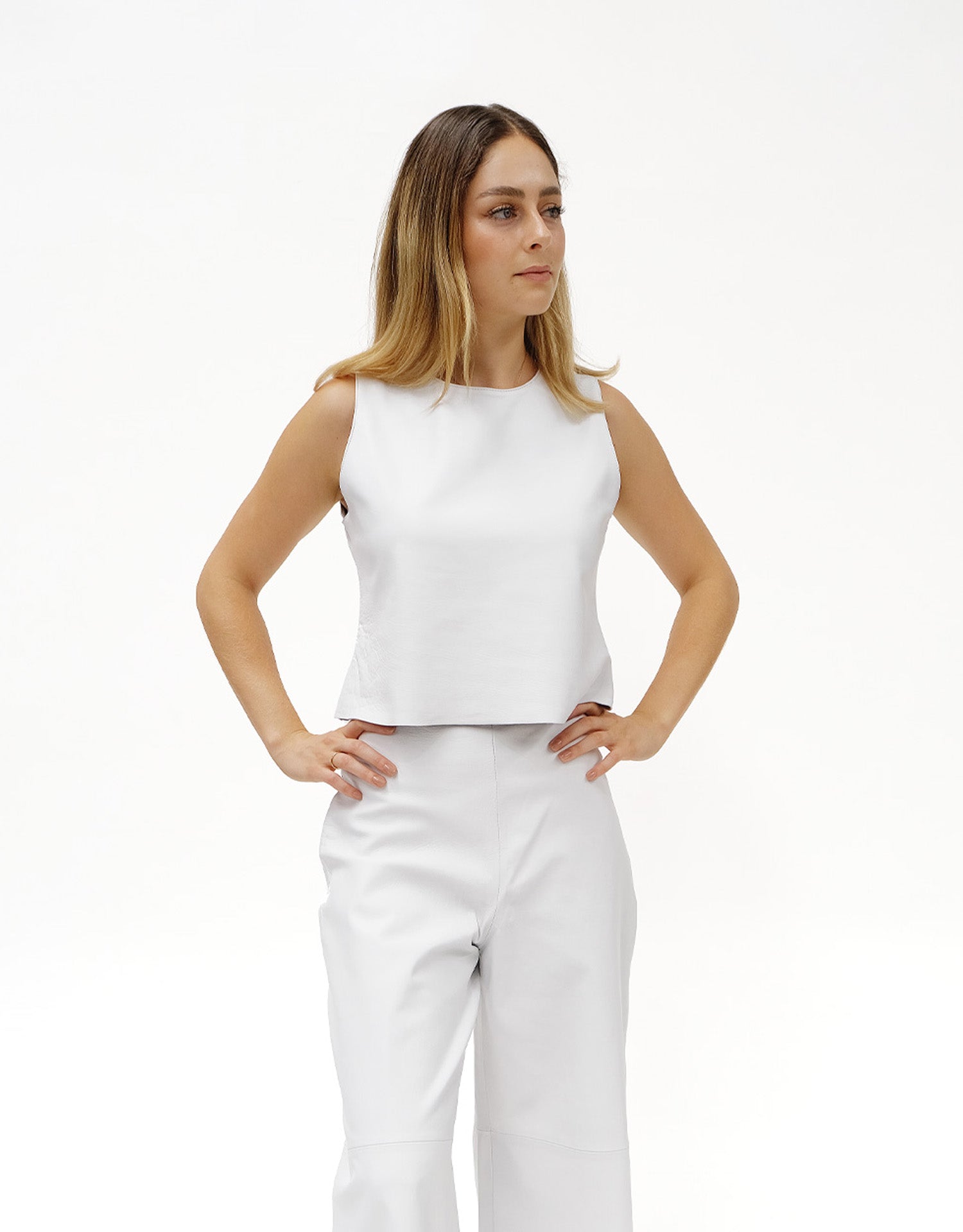 Blusa top de cuero para mujer. Confeccionada a mano con piel de alta calidad. Elegante, distintiva y con esencia mexicana.