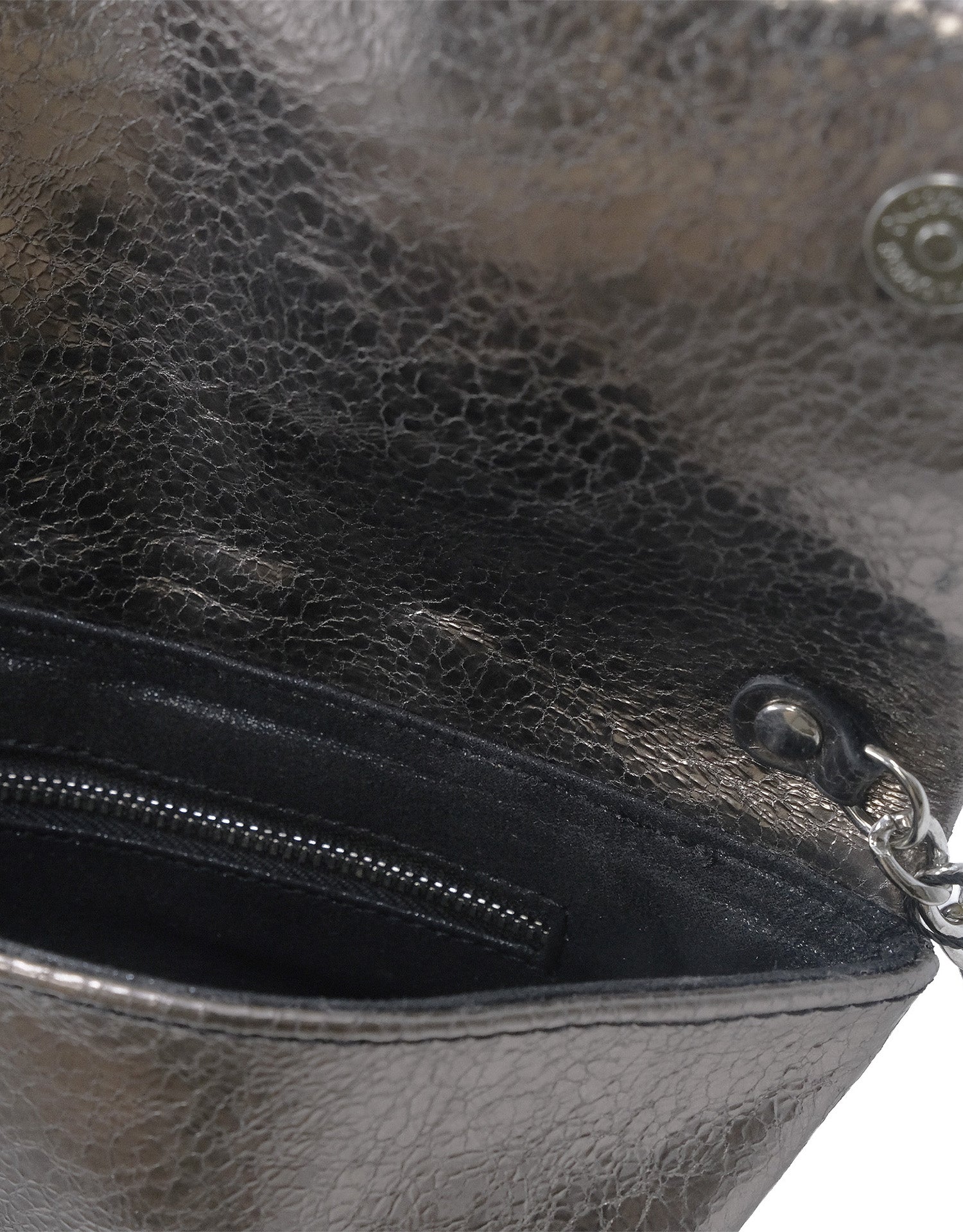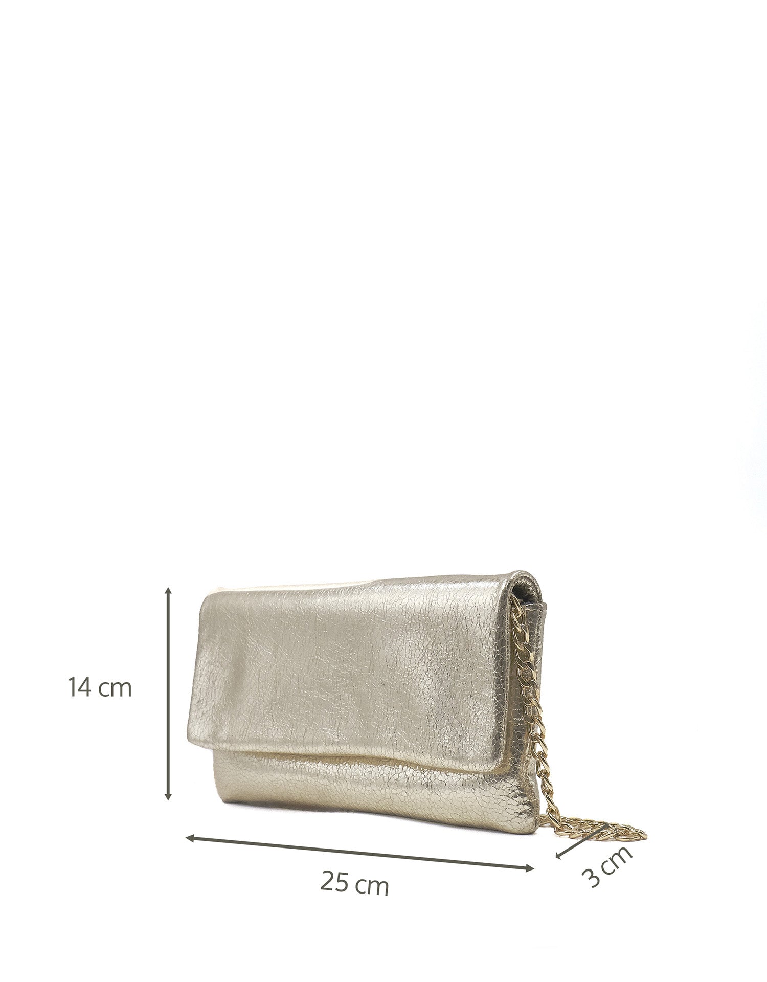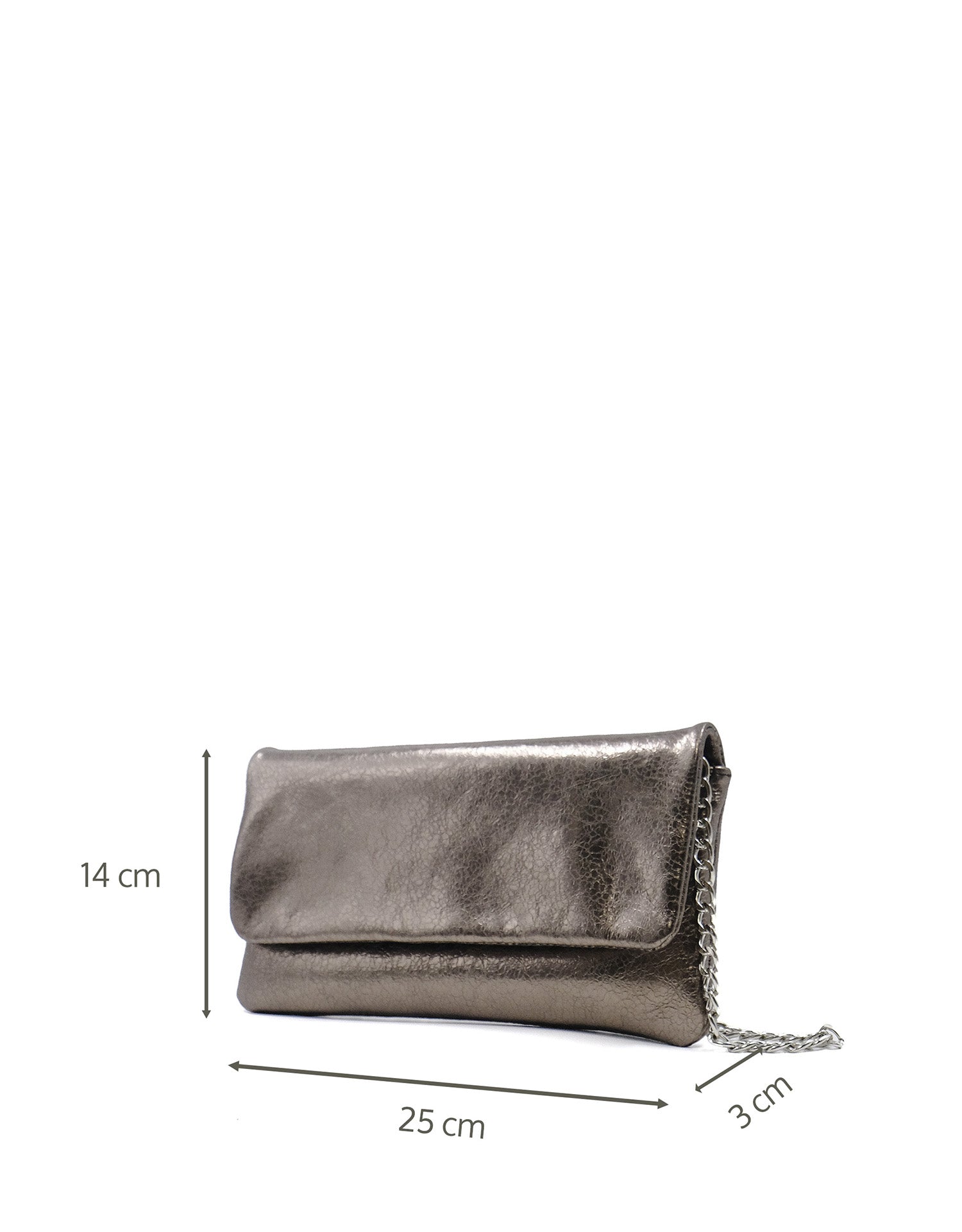 Clutch de piel genuina con cadena. Elegante, funcional y versátil. Elaborado por artesanos mexicanos. Dimensiones: 14x25x3 cm.