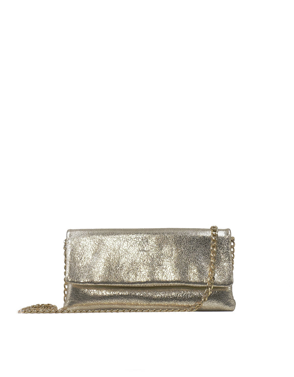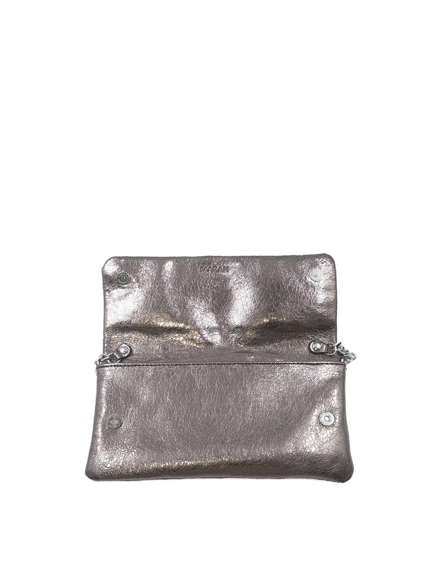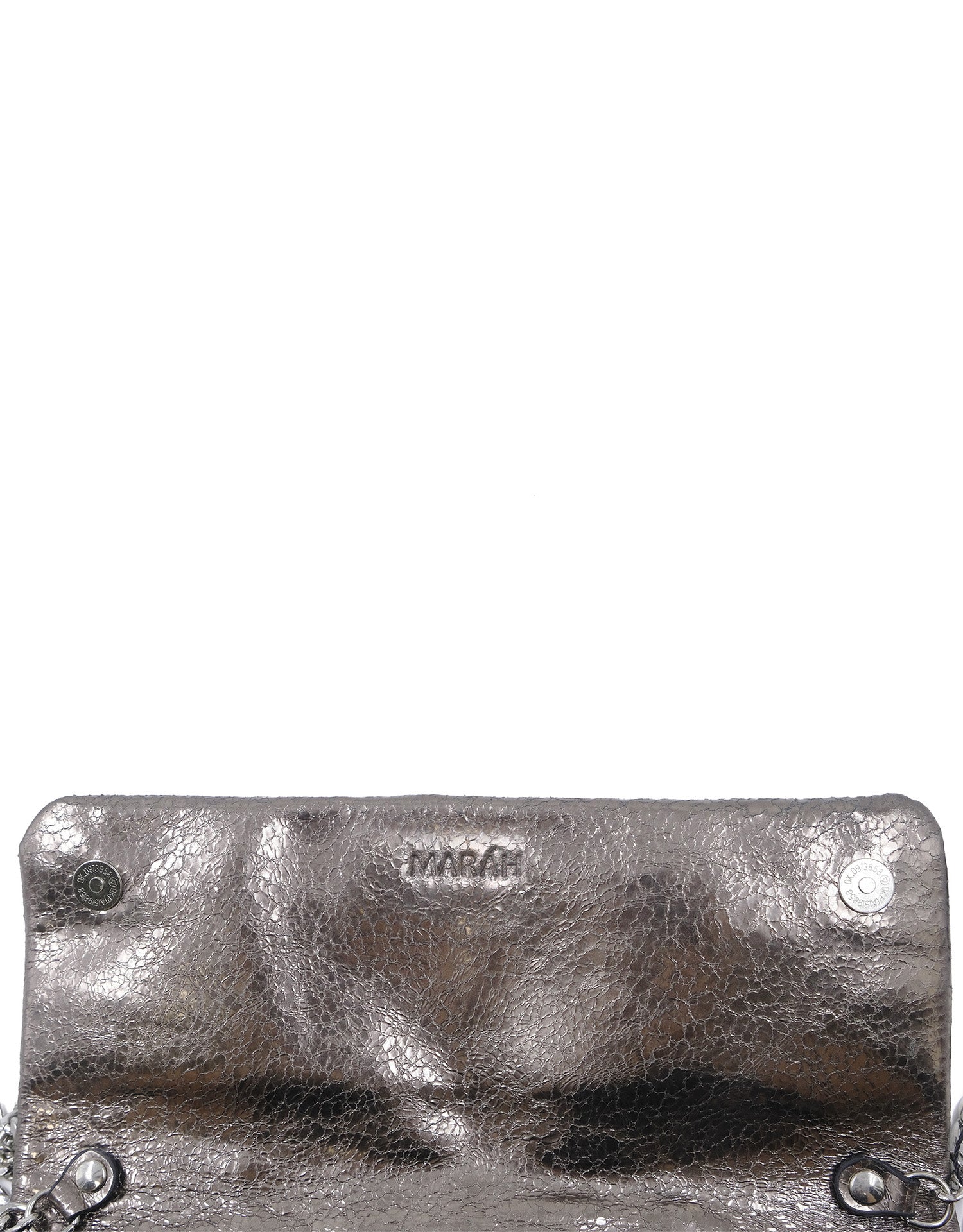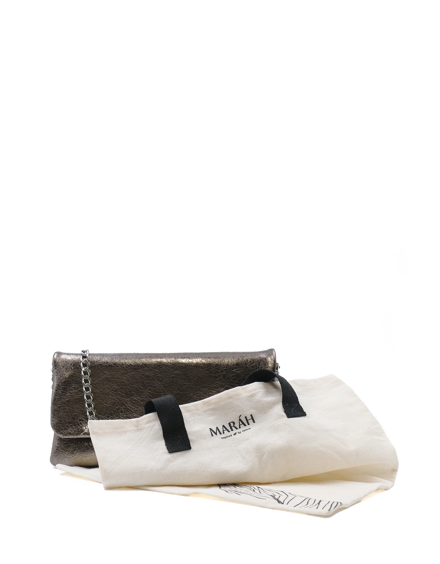 Clutch de piel genuina con cadena. Elegante, funcional y versátil. Elaborado por artesanos mexicanos. Dimensiones: 14x25x3 cm.