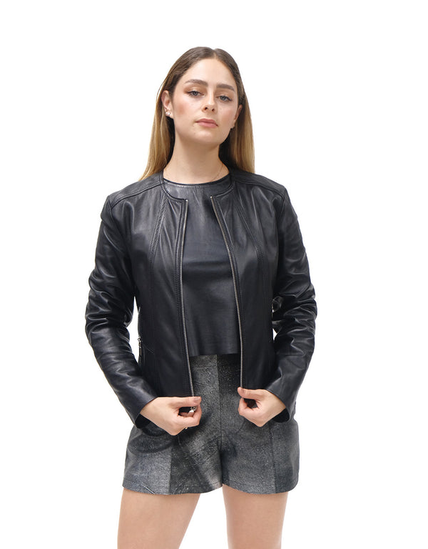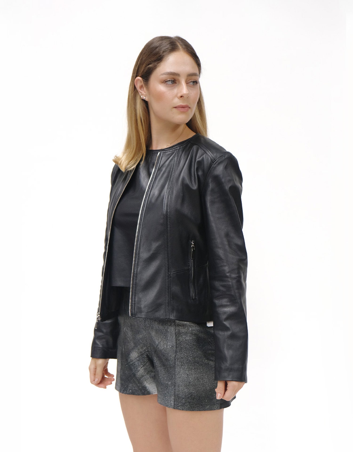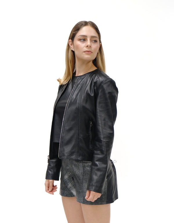 Chamarra De Piel Para Dama Maráh De Cuero Color Negro – Diseño artesanal inspirado en México.