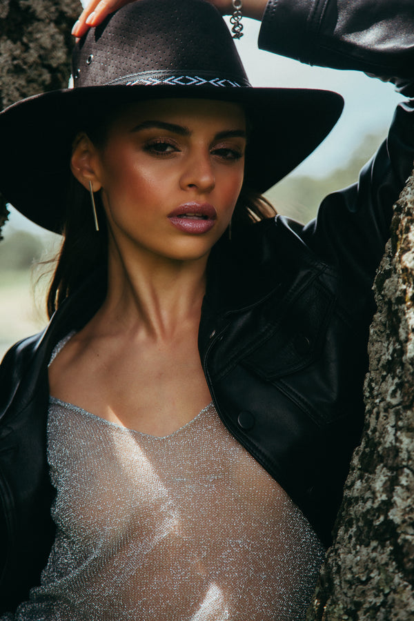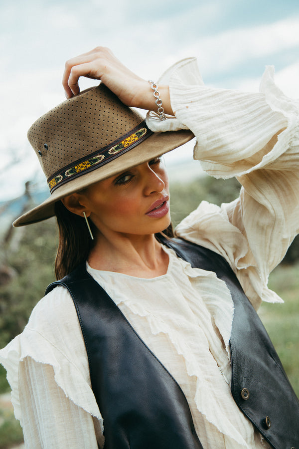 Sombrero australiano de textil canela. Se adapta a cualquier estilo y ocasión. Brinda un toque distintivo a tu atuendo.