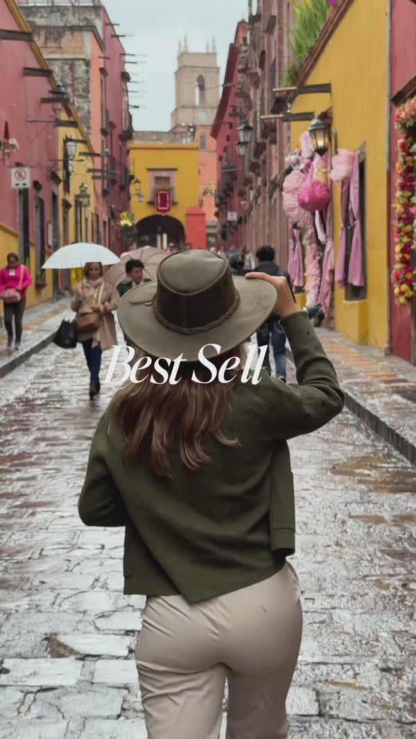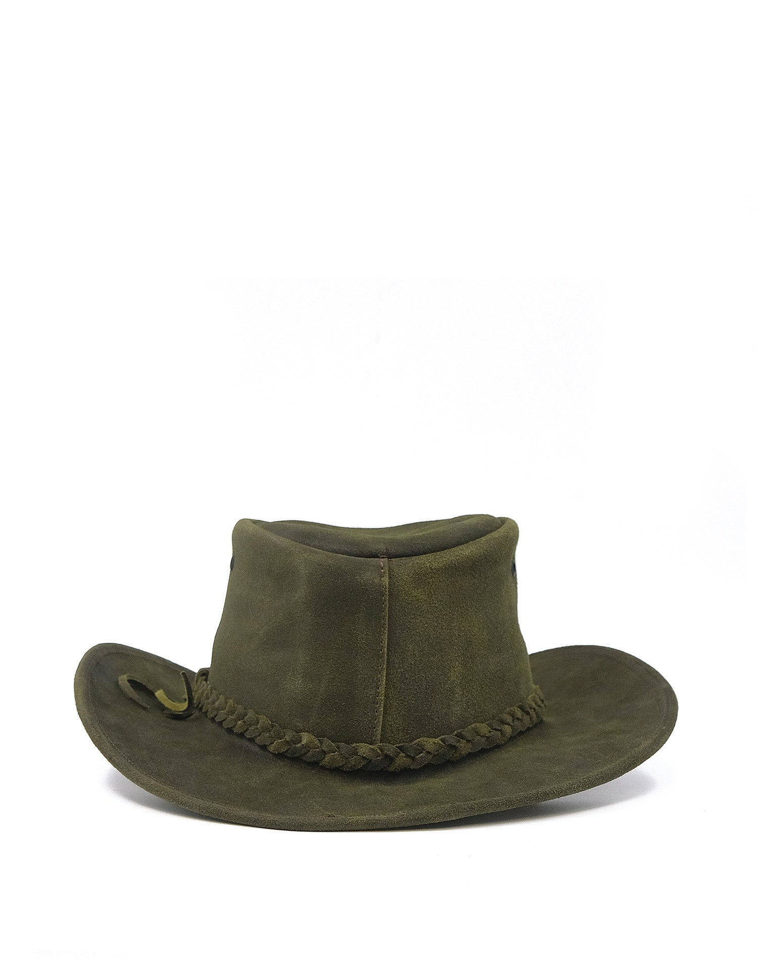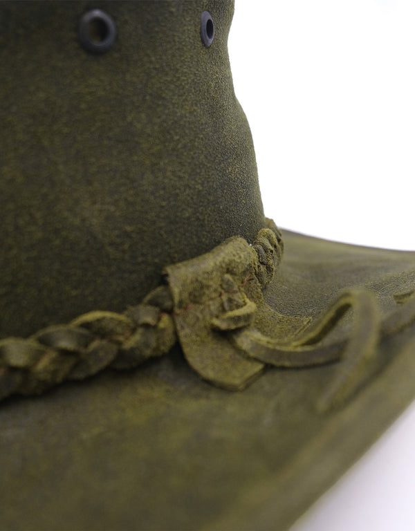 Sombrero vaquero de piel genuina verde olivo. Apariencia sofisticada, durabilidad y comodidad. Toque distintivo para la ciudad o el campo.