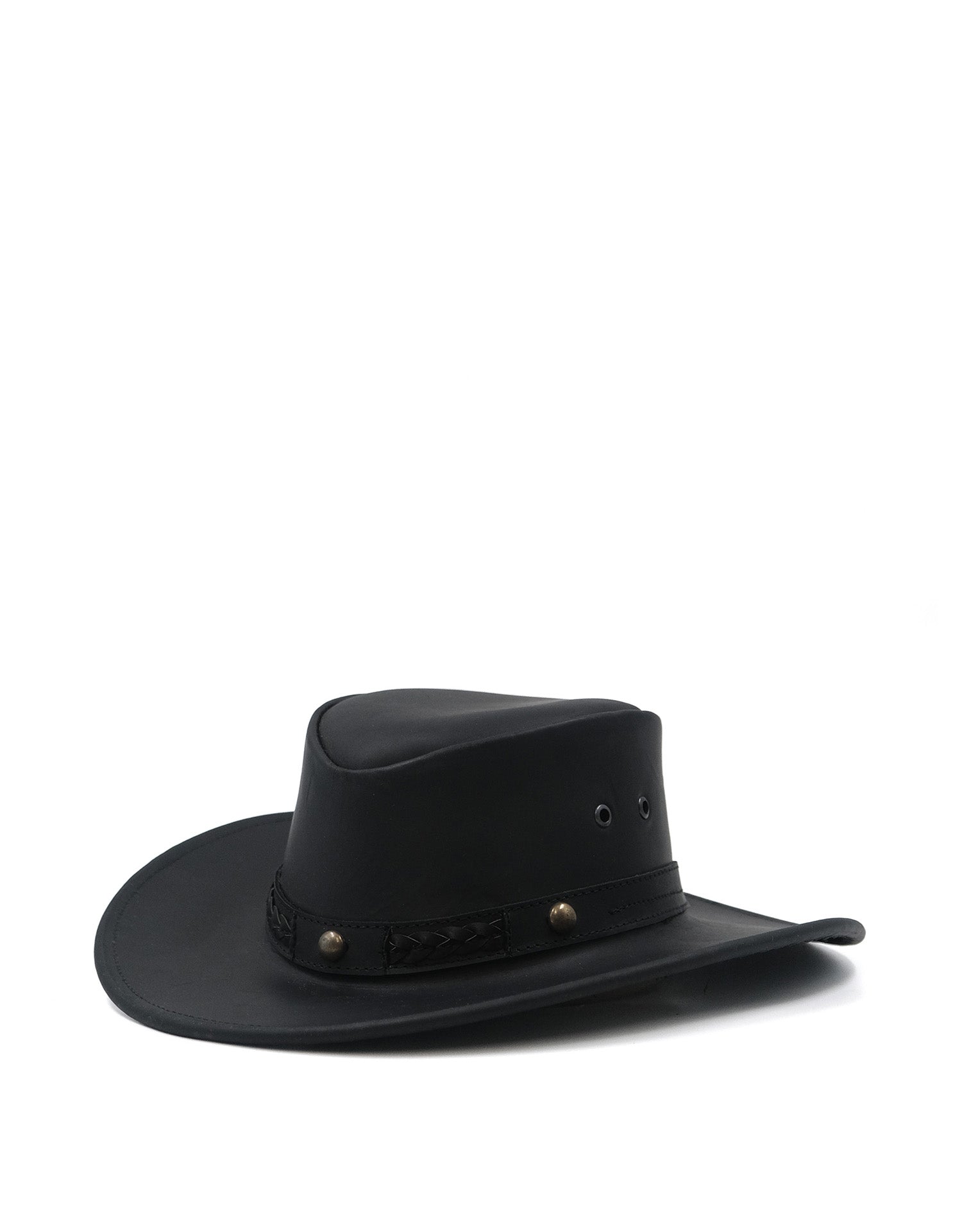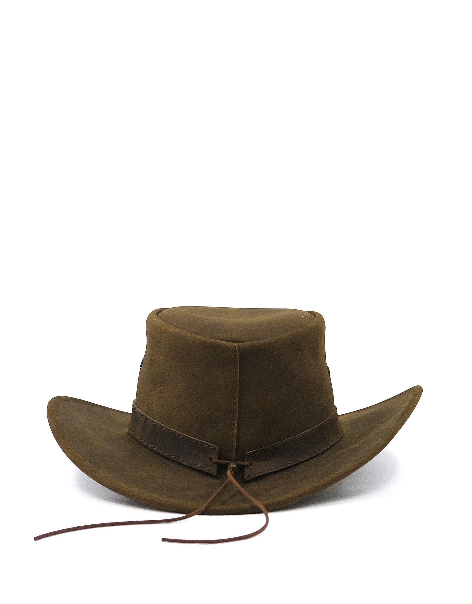 Sombrero australiano de piel genuina café. Accesorio que combina estilo y funcionalidad. Durabilidad y acabado elegante.